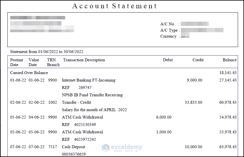 In this case, we have a bank statement for June’22 in PDF format. We’ll convert this bank statement into an Excel spreadsheet.