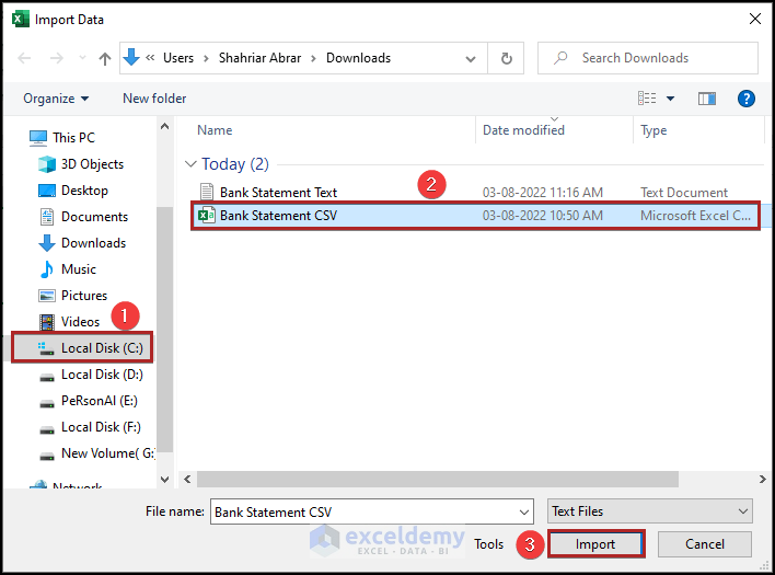 Method 2 – Convert Bank Statement Text from CSV File to Excel