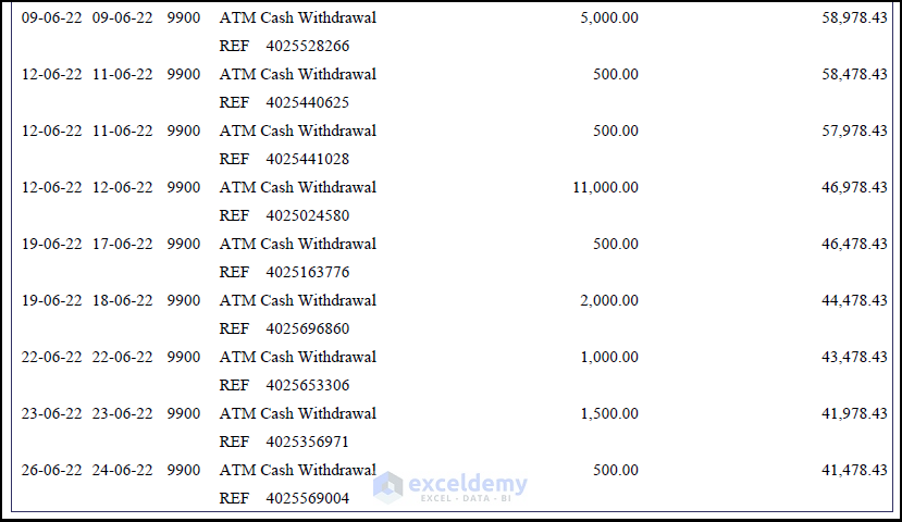 Method 3 – Convert Bank Statement Text from Text File to Excel