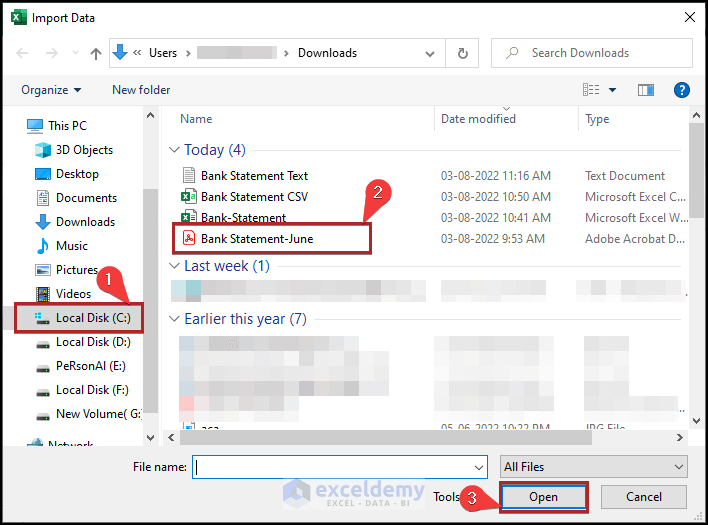 - Choose the file. Here, we’ve selected Bank Statement-June.